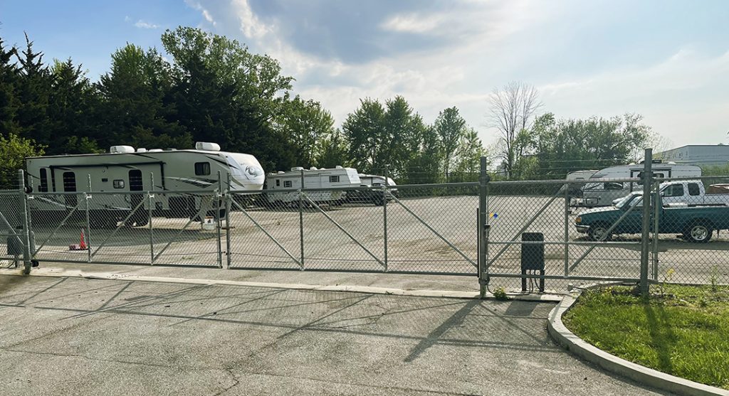 Outdoor Storage is 10′ wide by 35 feet deep and 10′ wide by 45 deep. All spots are on a paved surface inside a fence. We installed a key coded gate for 24 hrs access and securing your assets. The outdoor storage is located in the rear of the property where your properties are hidden from public view. We also have 24 hrs surveillance cameras.